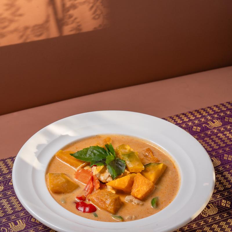 Pumpkin cooked in coconut milk with your choice of curry